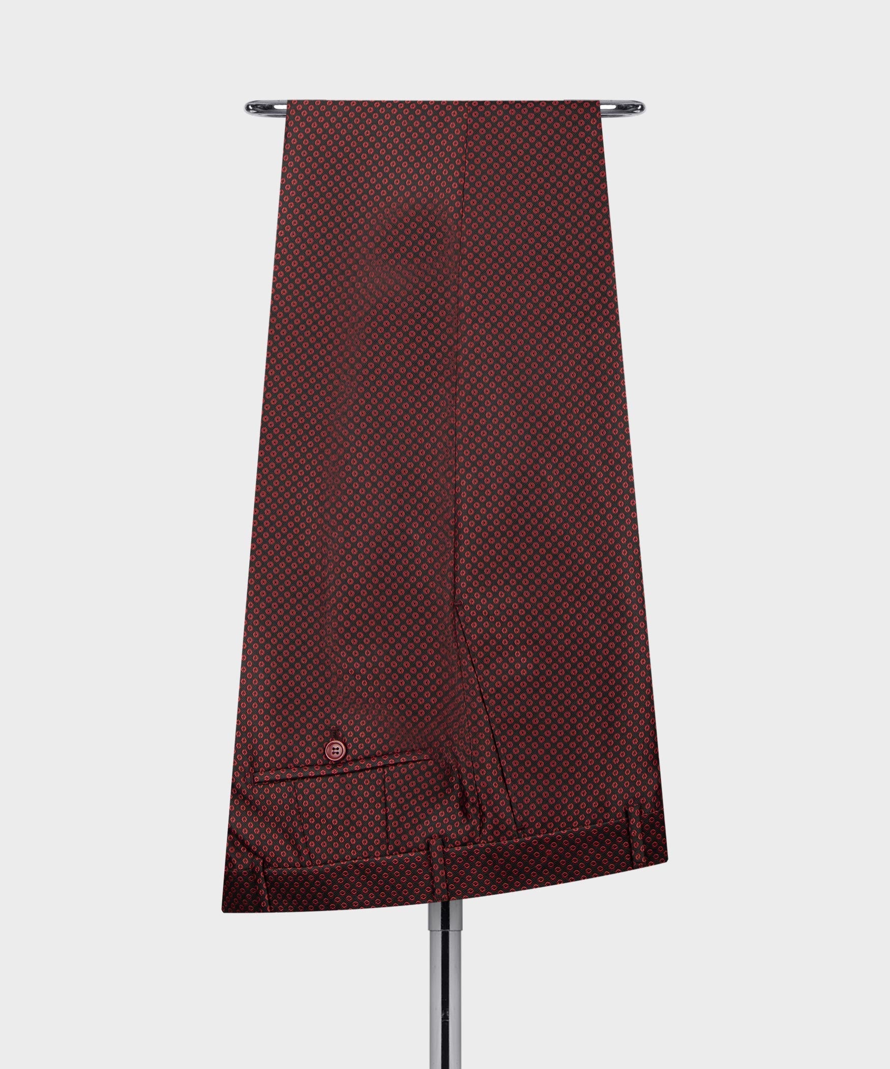 Red Spotted-Black Lapeled Double Breasted Classic Tuxedo.
