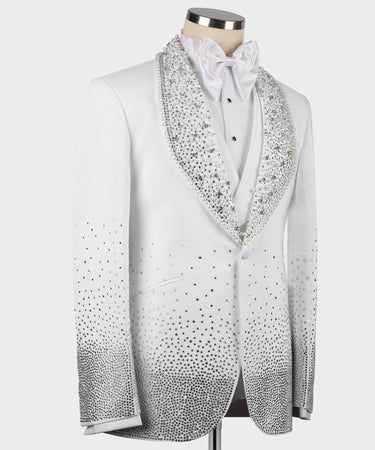 Gem Stone Detailed White Special Tuxedo