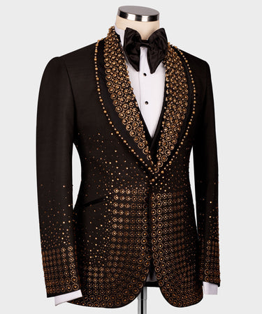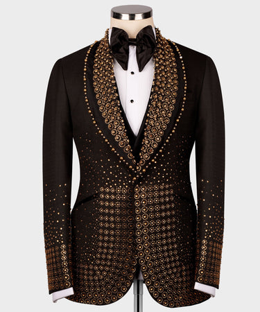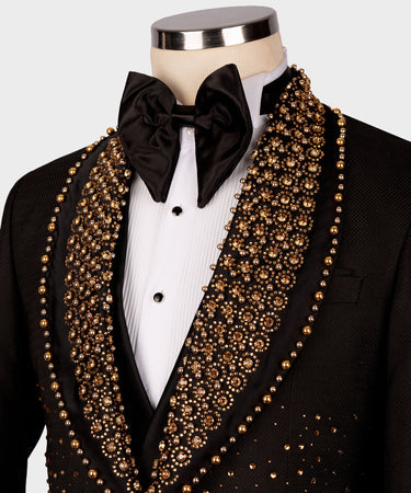 Gold Gem Stone Detailed Black Custom Tuxedo