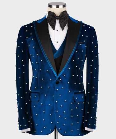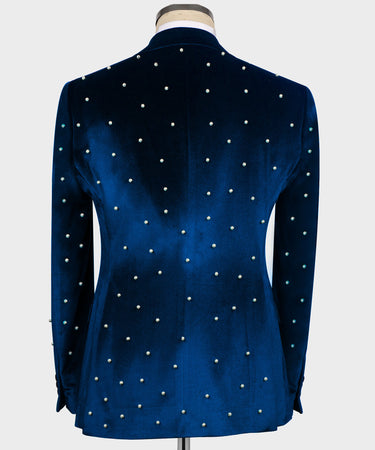 Pearl Embroidered Blue Velvet Tuxedo