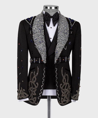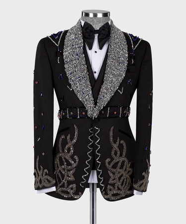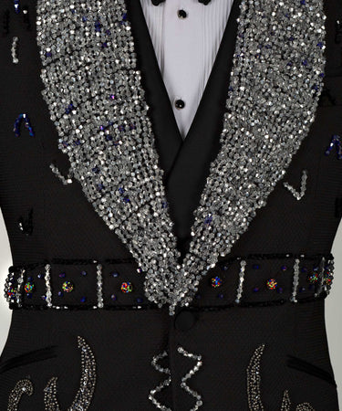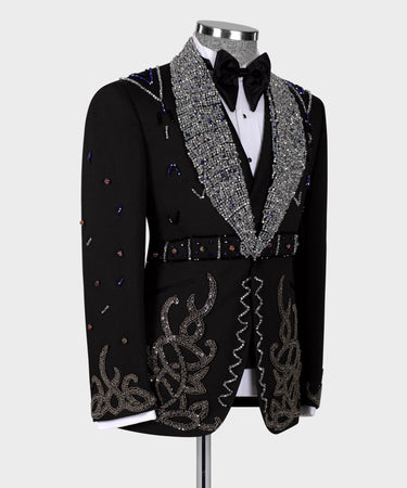 Un smoking sur mesure vous permet d'allier confort et élégance. Découvrez les smokings des collections Dio Babylonian ornés de pierres précieuses. Pantalon de smoking noir en soie et laine, fermeture à un bouton et deux fentes arrière. Confection sur mesure (délai de neuf jours) sur commande spéciale. Le costume comprend veste, gilet et pantalon.