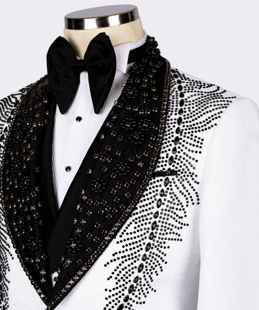 Smoking brodé de pierres détaillées au pochoir de plumes blanches