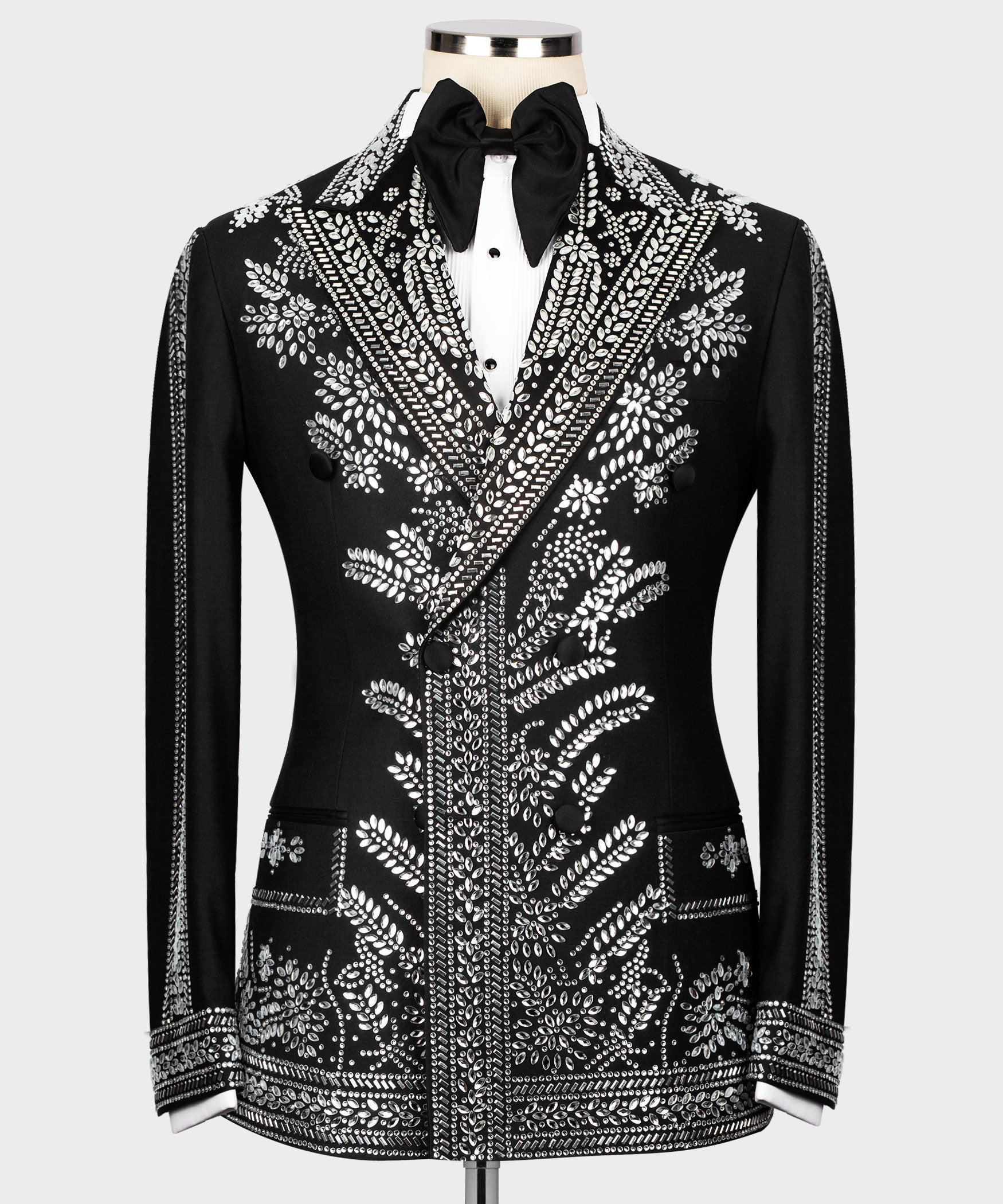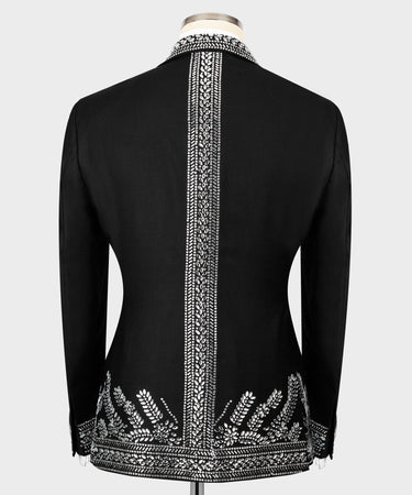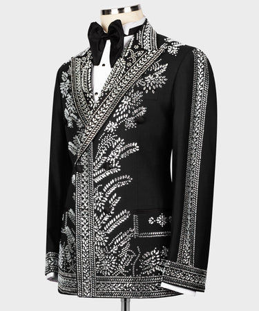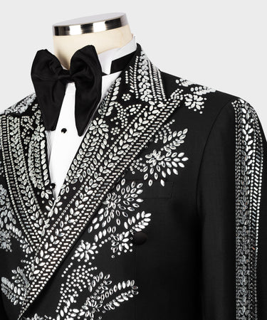Smoking noir avec broderie de pierres argentées