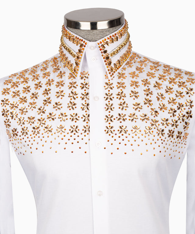 Chemise blanche brodée de pierres dorées