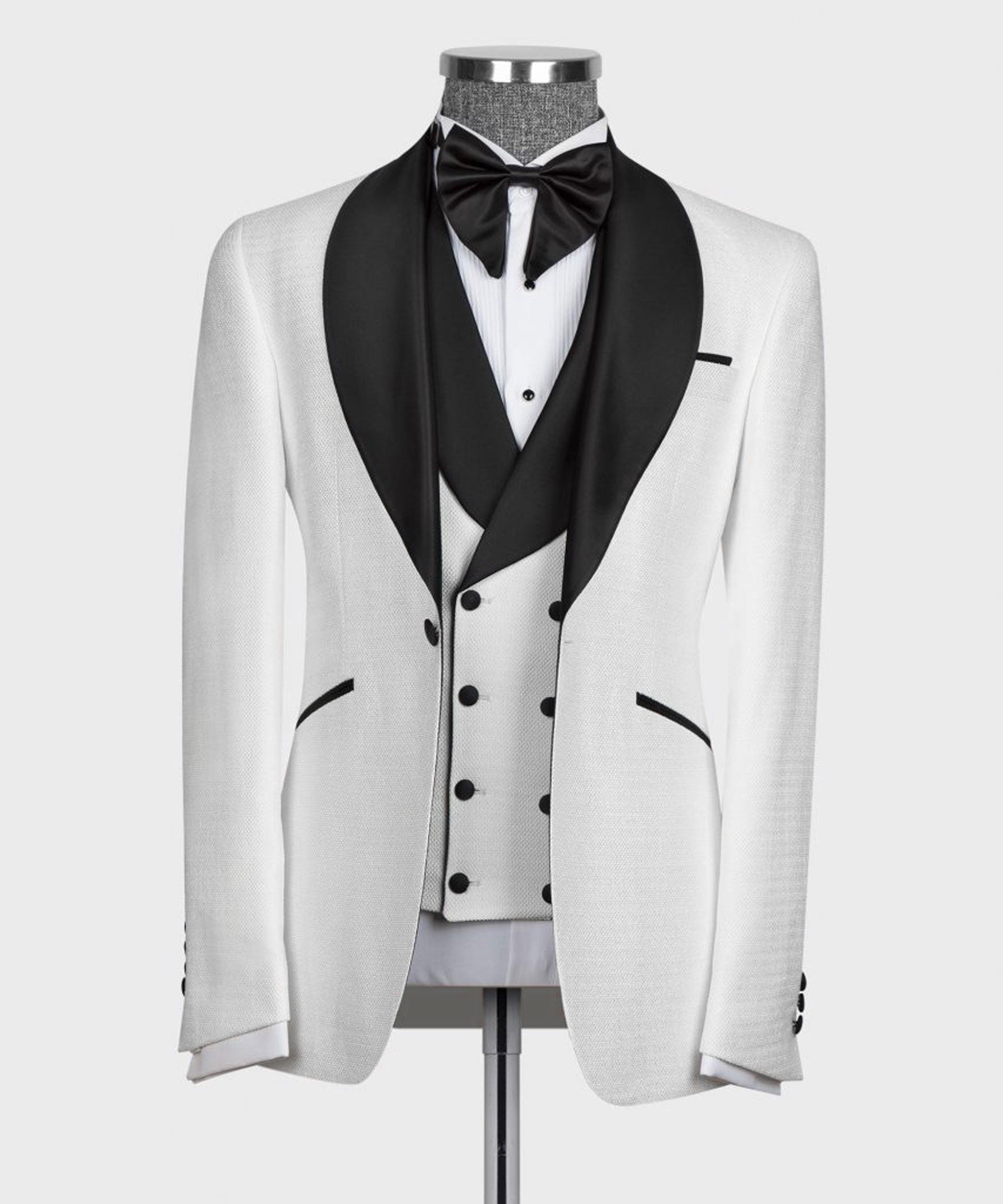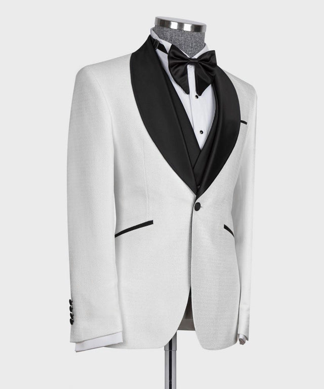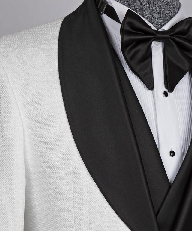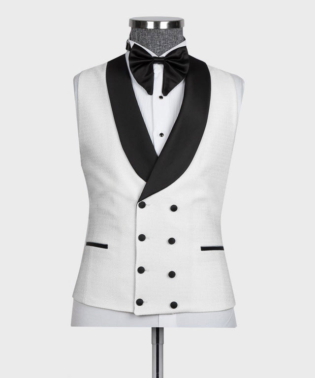 Smoking à col noir et gilet blanc