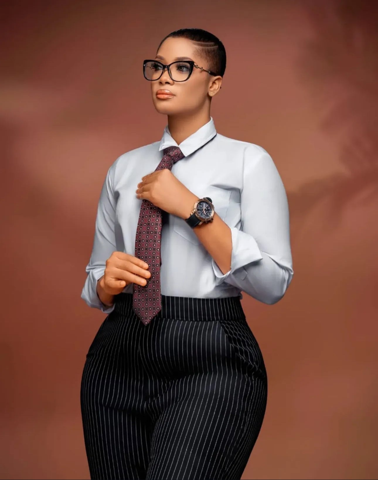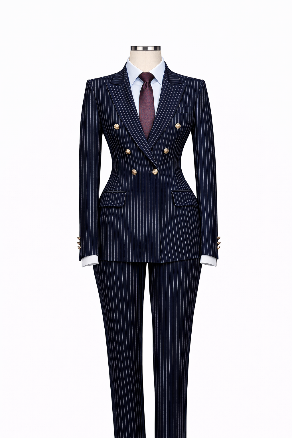 Tailleur croisé à fines rayures pour femme (ensemble veste et pantalon)