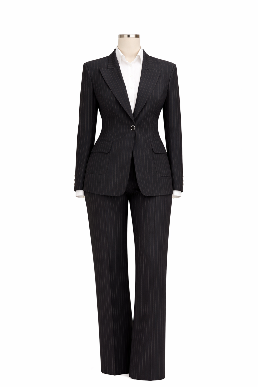Tailleur sur mesure à fines rayures pour femme (veste et pantalon)