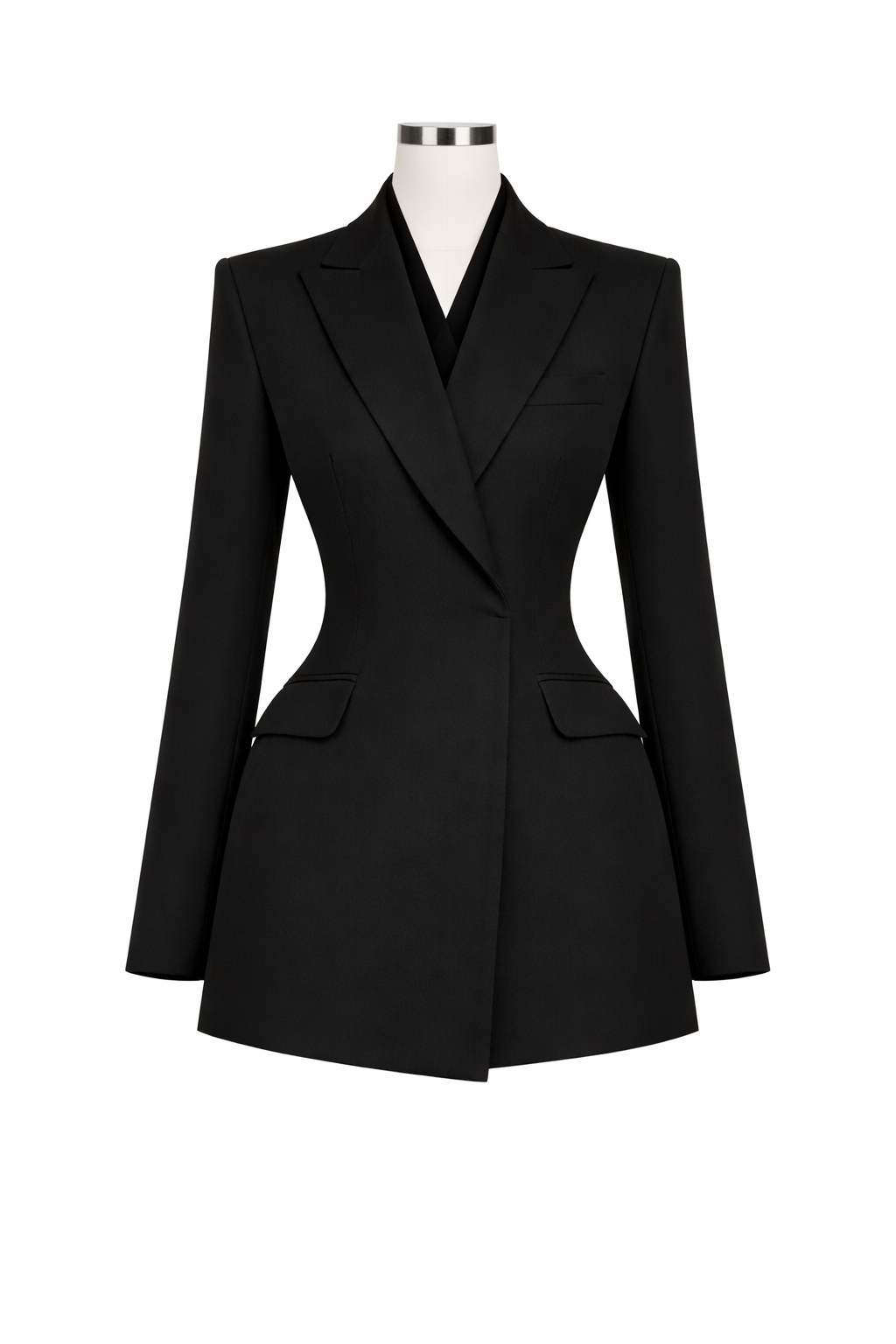 Un blazer élégant et structuré, conçu pour une allure à la fois affirmée et raffinée. Il présente un revers pointu, des épaules structurées et une silhouette affinée qui souligne la taille avec élégance. Idéal pour le travail, les événements formels ou une tenue quotidienne sophistiquée.