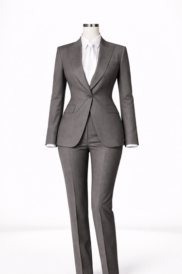 Cet élégant tailleur deux-pièces pour femme se compose d'un blazer gris structuré et d'un pantalon slim assorti. Avec son revers impeccable, sa coupe raffinée et ses finitions classiques, il confère une allure professionnelle et assurée, tout en préservant une élégance féminine. Idéal pour les rendez-vous d'affaires, les événements formels ou une tenue quotidienne sophistiquée.
