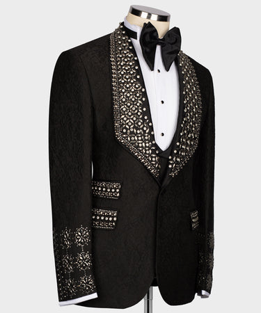 Special Tuxedo was designed by DIYADIN CESUR and all crystals are fixed by handwork. The material of the suit is 100% Silk Satin. It can be made for special orders as well as design.Β
