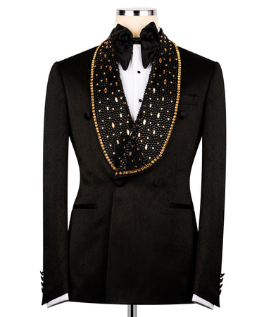 Belted stone embroidered tuxedo